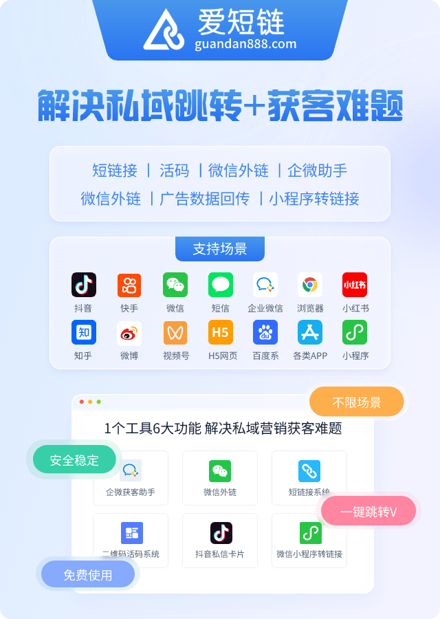 注册与登录 首先,访问爱短链的官方网站,点击右上角的“注册”按钮,填写相关信息完成注册。注册成功后,使用账号和密码登录到平台后台。登录过程简单快捷,支持微信扫码和手机验证码等多种方式。 获取长链接 在准备创建短链接之前,你需要先获取想要缩短的长链接。例如,在微信公众号后台,打开需要生成短链接的文章,将该文章的长链接复制到剪贴板中。 生成短链接 登录爱短链平台后,你会看到后台界面提供了多种功能选项。点击“短链”功能,将刚刚复制的长链接粘贴到指定的输入框中。爱短链还允许用户绑定自己的域名,使短链接更具个性化和辨识度。设置完成后,点击“生成短链接”按钮,平台会立即为你生成对应的短链接。 使用短链接 短链接生成后,你可以将其复制并粘贴到公众号推文中需要添加链接的位置,如正文内容、阅读原文链接、公众号菜单栏等。在正文中插入短链接时,可以搭配一些吸引人的引导语,如“点击下方链接查看更多精彩内容”或“详情请戳[短链接]”等,以提高用户的点击率。
