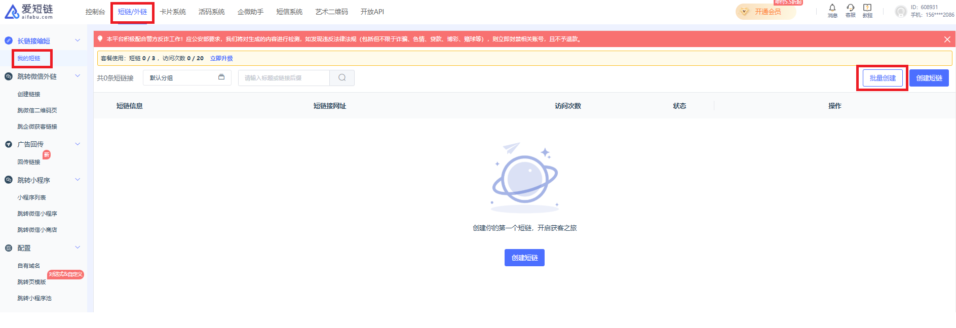 注册与登录 首先,访问爱短链的官方网站,点击右上角的“注册”按钮,填写相关信息完成注册。注册成功后,使用账号和密码登录到平台后台。登录过程简单快捷,支持微信扫码和手机验证码等多种方式。 获取长链接 在准备创建短链接之前,你需要先获取想要缩短的长链接。例如,在微信公众号后台,打开需要生成短链接的文章,将该文章的长链接复制到剪贴板中。 生成短链接 登录爱短链平台后,你会看到后台界面提供了多种功能选项。点击“短链”功能,将刚刚复制的长链接粘贴到指定的输入框中。爱短链还允许用户绑定自己的域名,使短链接更具个性化和辨识度。设置完成后,点击“生成短链接”按钮,平台会立即为你生成对应的短链接。 使用短链接 短链接生成后,你可以将其复制并粘贴到公众号推文中需要添加链接的位置,如正文内容、阅读原文链接、公众号菜单栏等。在正文中插入短链接时,可以搭配一些吸引人的引导语,如“点击下方链接查看更多精彩内容”或“详情请戳[短链接]”等,以提高用户的点击率。