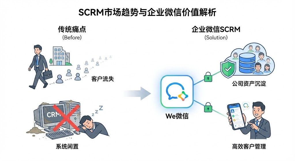 2024年scrm市场规模突破150亿元,企业微信j9国际官网的解决方案占据45%份额且持续攀升。从教培机构的家校沟通到零售品牌的会员运营,为什么大家都在往企业微信这个方向走?本文拆解12亿用户池的真实价值,帮你看清什么情况适合切换到企业微信scrm。很多老板都遇到过这个困境:销售辛苦积累的客户资源,员工一离职就成了"个人资产"带走,公司只能从零开始。或者花大钱上线crm系统,结果销售嫌麻烦不愿意录入,系统成了摆设。这些痛点集中指向一个核心问题——客户关系到底该怎么管?