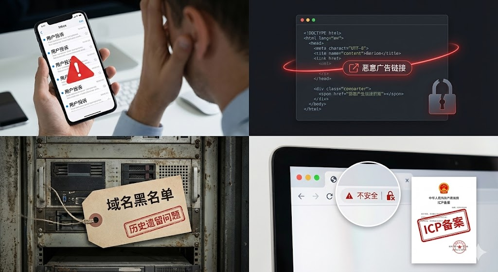 3. 域名历史遗留问题:新购买的域名可能曾被前任所有者用于违规用途,已被列入黑名单