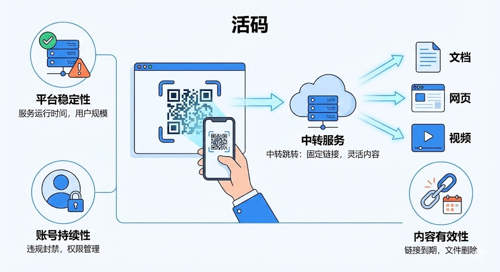 不少企业主问过我同一个问题:活码能不能一直用下去?毕竟印刷物料成本不低,谁也不想过段时间就得重新设计海报。这个问题没有标准答案。活码的寿命取决于你怎么用,以及选择什么样的平台。