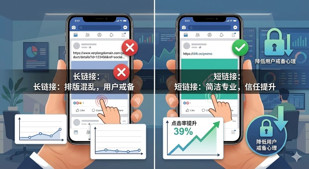 发产品推广链接时,同样的内容,用短链接的转化率总是更高。这背后不只是"看着顺眼"那么简单,而是涉及用户心理、平台规则和数据追踪的多重因素。运营推广时,长链接总被平台截断或显得不专业?本文通过实际数据对比,揭秘短链接如何降低用户戒备心理,从而提升点击率。