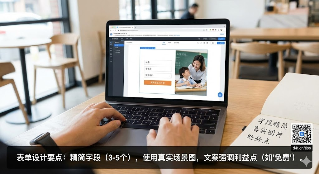 表单字段是个平衡问题。字段太少,收集的信息不够用;字段太多,用户嫌麻烦不愿填。建议保留3-5个核心字段:姓名、手机号是必填项,然后根据业务加1-2个筛选字段。卖课程的可以加"孩子年龄",做装修的可以加"房屋面积"。有个朋友一开始设置了8个字段,表单提交率只有15%,后来精简到4个字段,提交率涨到40%。