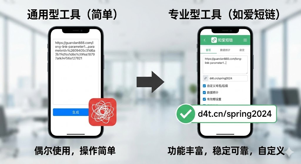 市面上的短链接工具分为两类:通用型和专业型。通用型工具操作简单,适合偶尔使用的场景,你只需要把原链接粘贴进去,点击生成就能得到一个缩短后的网址。专业型工具则提供更多功能,比如爱短链这类平台,除了基础的链接缩短,还支持自定义域名、数据统计、批量处理等进阶需求。