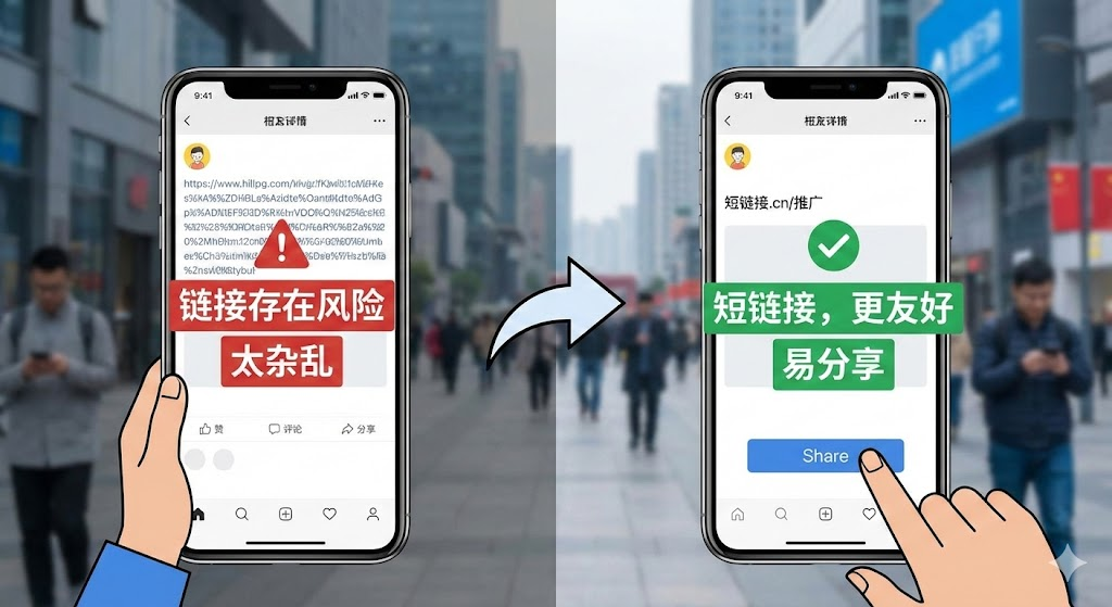 在社交平台发推广链接时,你可能遇到过这样的困扰:一串带着各种参数的网址占了半个屏幕,发出去不到一分钟就被系统提示「链接存在风险」。或者在微信群里分享商品链接,长url把整条消息撑得特别突兀,用户看一眼就划走了。