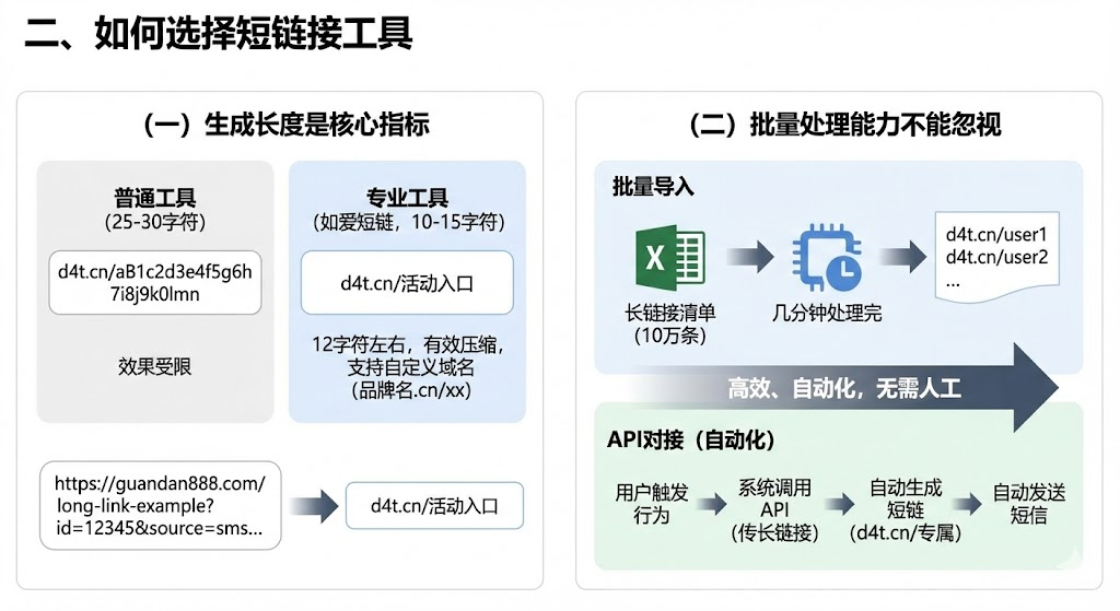 • 不是所有短链接都能真正省钱。有些工具生成的短链接还有25-30个字符,这种长度对短信字符优化帮助有限。选工具时要重点关注实际生成长度,10-15字符是理想标准。