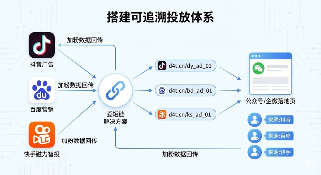建立粉丝来源追踪体系的核心在于让每个新增粉丝都带着明确的身份标签进入私域。最直接的方法是为每个投放渠道创建独立的追踪链接,抖音广告使用专属链接,百度广告使用另一个链接,快手广告再使用独立链接,用户点击后系统自动识别来源平台。