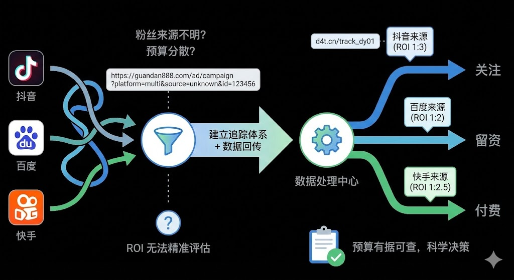 在抖音、百度、快手等平台同时投放广告时,最令人困扰的问题莫过于无法准确追踪粉丝来源。多平台投放意味着预算分散,如果缺乏有效的追踪体系,就无法判断哪个渠道真正带来了转化。建立完整的粉丝来源追踪方法,结合主流平台的数据回传功能,能够帮助广告主建立从投放到转化的完整链路,让每一笔广告预算都有据可查,实现精准的roi评估和科学的预算分配决策。