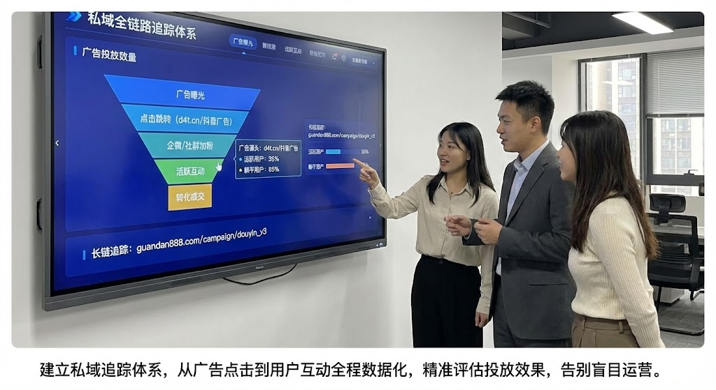 投放抖音、百度、快手等平台广告后,粉丝加到企微或社群,接下来的行为数据才是关键。信息流广告带来的加粉数据,很多团队只盯着加粉成本和数量,粉丝进入私域后是活跃互动还是直接躺平?这些后续行为数据,直接决定了广告投放的真实效果。没有追踪体系,就像开车不看仪表盘,方向对不对全凭感觉。