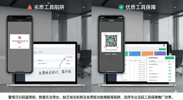 • 日扫码量上限限制:活动期间流量暴增,如果工具限制日扫码1000次超出部分直接失效,等于白白浪费推广费,必须确认峰值承载能力至少预留3倍余量