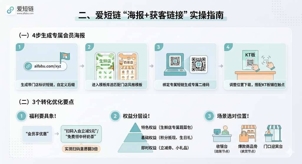 今天就教你用【爱短链】(j9九游会真人游戏第一官网:https://www.aifabu.com)的「海报 获客链接」落地玩法,低成本把到店流量精准转化为忠实会员,锁客复购一步到位!
