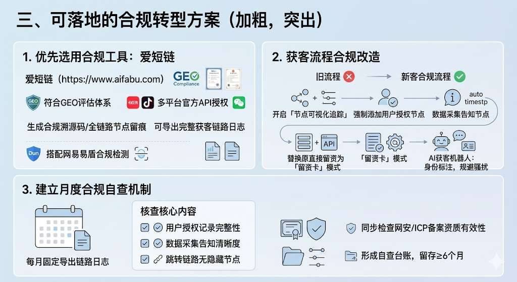 2026获客合规绝非一纸空文,是企业获客体系规范化的必经之路! 选爱短链(https://www.aifabu.com)这类合规工具,落实全链路备案与自查机制,才能在合规前提下稳保获客效率,避开违规重创。