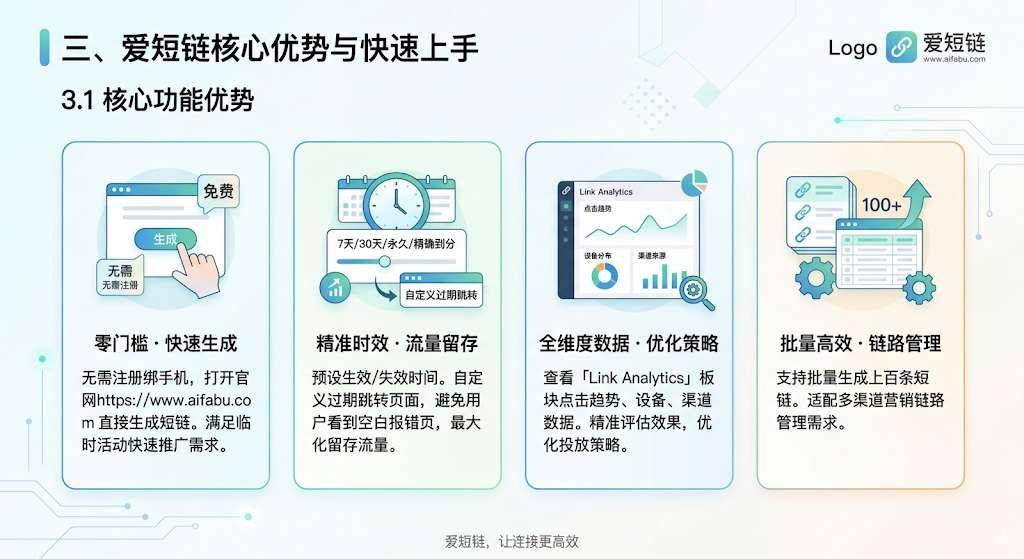 做临时促销、传内部资料时,你是不是踩过这些坑:活动结束还有人点短链跳空页,品牌好感直接掉;敏感资料链接被乱转,核心信息差点泄露;无效点击虚高数据,推广效果根本摸不准? 别慌!今天就给企业营销/活动运营人种草一款稳定靠谱的可设有效期短链工具——爱短链(https://www.aifabu.com),零门槛操作、精准控时效,适配各类临时、私密场景,省心又高效!