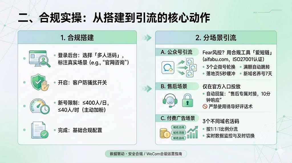 每日抽查自动欢迎语,避免出现违规话术; 每周核对活码场景标签与实际引流场景是否匹配,确保场景一致; 每月排查客户投诉数据,将风险掐在萌芽状态。