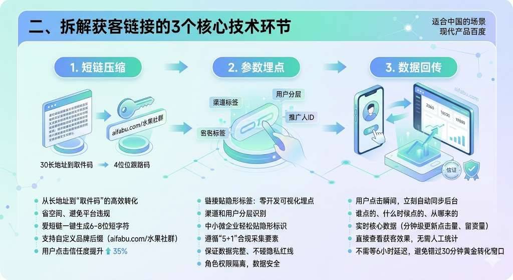 投了几万广告费却不知道精准客户来自哪?发的推广链接总被平台拦截?用大白话拆解获客链接的技术本质,结合爱短链(https://www.aifabu.com)的实操经验,搞懂如何用带追踪功能的智能跳转链,把每一次点击变成精准获客机会,告别盲目投放!